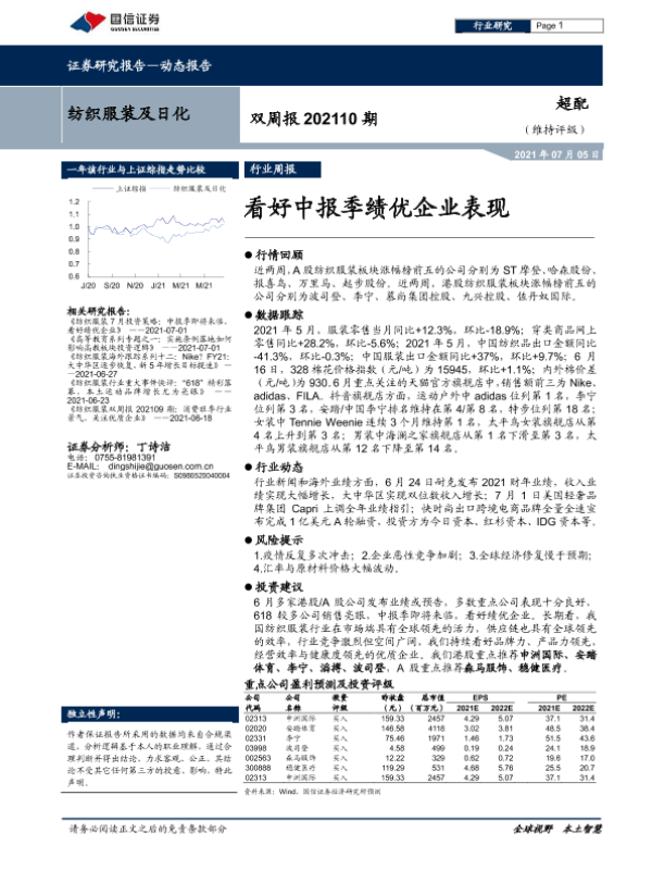 【国信证券】【20210705】纺织服装及日化双周报202110期:看好中报季绩优企业表现-8页