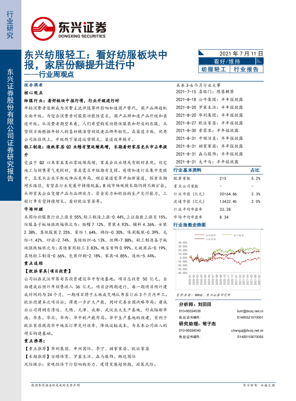 【东兴证券】【20210711】东兴纺服轻工行业周观点:看好纺服板块中报,家居份额提升进行中-10页