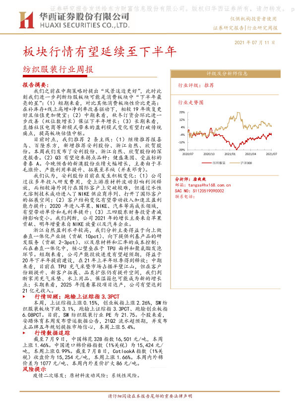 【华西证券】【20210711】纺织服装行业周报:板块行情有望延续至下半年-15页
