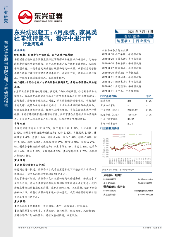 【东兴证券】【20210718】东兴纺服轻工行业周观点:6月服装、家具类社零维持景气,看好中报行情-10页