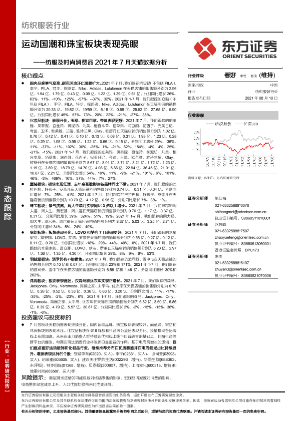 【东方证券】【20210810】纺服及时尚消费品2021年7月天猫数据分析:运动国潮和珠宝板块表现亮眼-16页