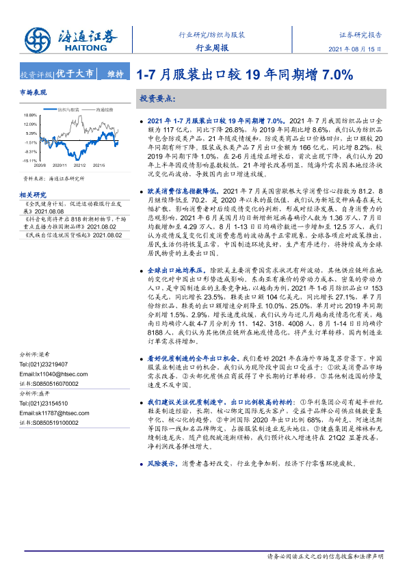 【海通证券】【20210815】20210815-海通证券-纺织与服装行业周报:1-7月服装出口较19年同期增7.0%-7页