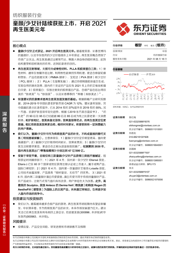 【东方证券】【20210818】纺织服装行业:童颜/少女针陆续获批上市,开启2021再生医美元年-23页