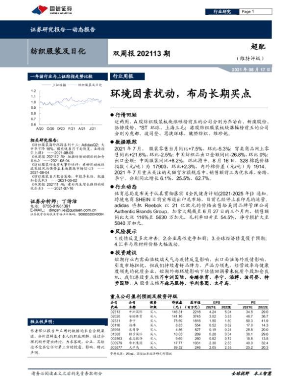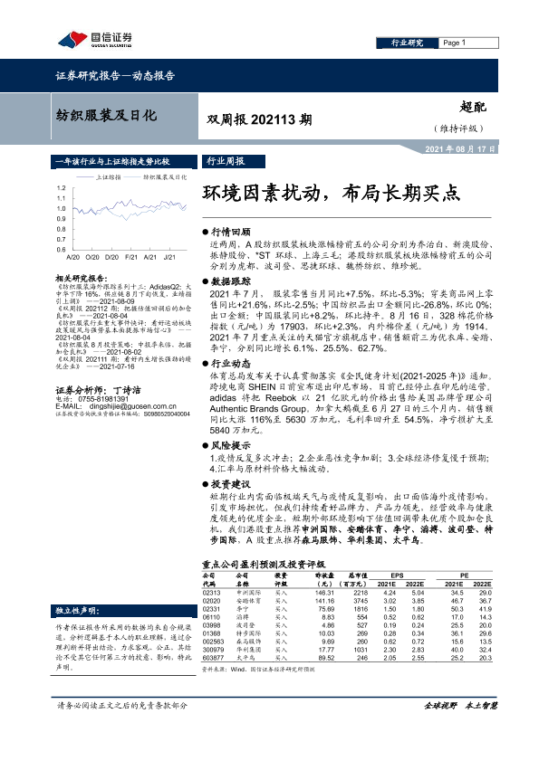 【国信证券】【20210817】纺织服装及日化双周报202113期:环境因素扰动,布局长期买点-8页