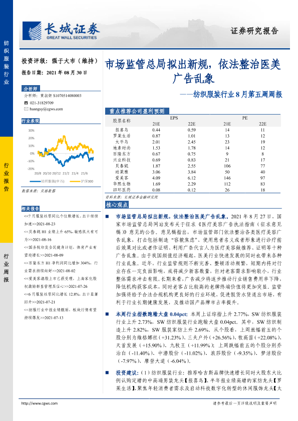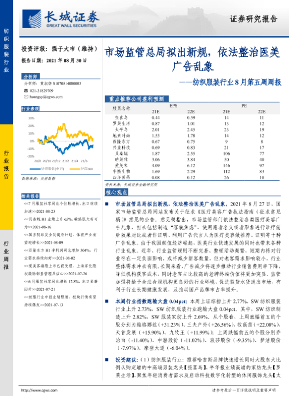 【长城证券】【20210830】20210830-长城证券-纺织服装:市场监管总局拟出新规,依法整治医美广告乱象-15页