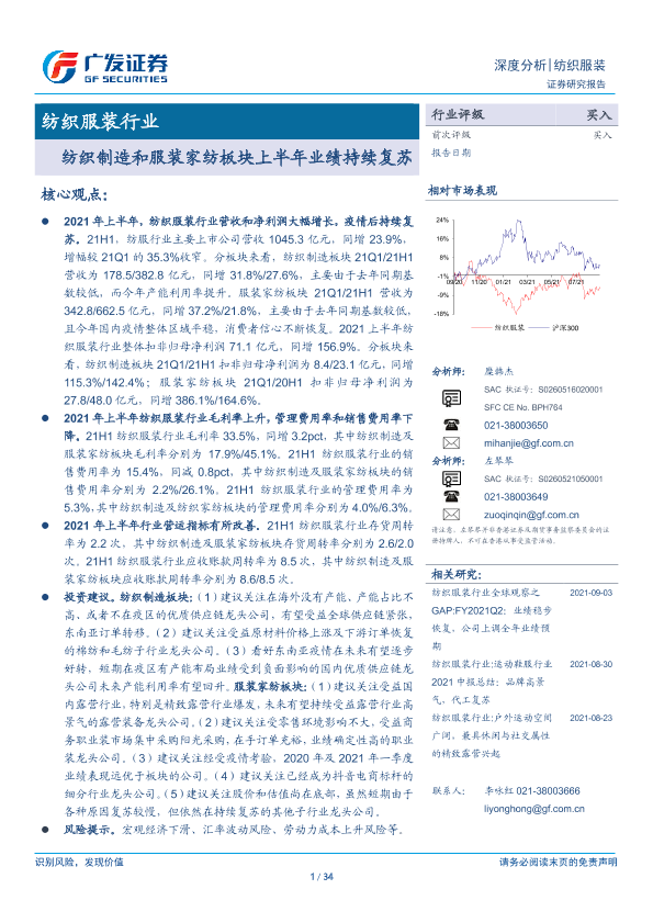 【广发证券】【20210905】20210905-广发证券-纺织制造和服装家纺板块上半年业绩持续复苏-34页
