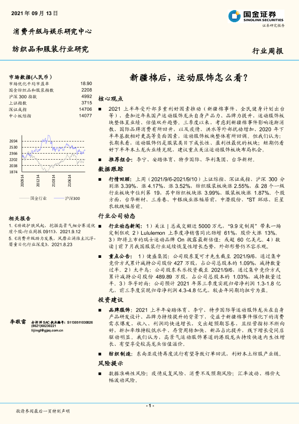 【国金证券】【20210913】20210913-国金证券-纺织品和服装行业研究:新疆棉后,运动服饰怎么看?-15页
