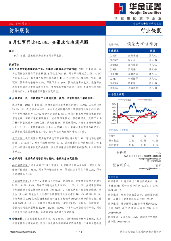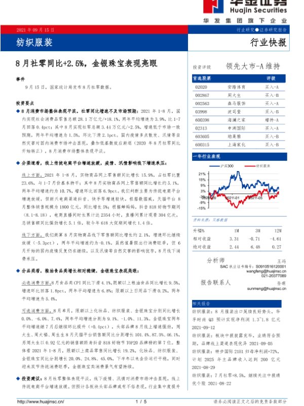 【华金证券】【20210915】20210915-华金证券-纺织服装:8月社零同比+2.5%,金银珠宝表现亮眼-5页