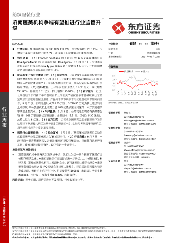 【东方证券】【20210922】纺织服装行业:济南医美机构争端有望推进行业监管升级-5页