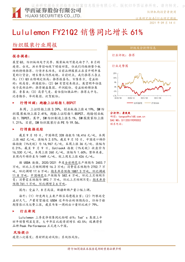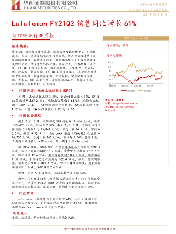 【华西证券】【20210914】纺织服装行业周报:Lululemon FY21Q2销售同比增长61%-18页