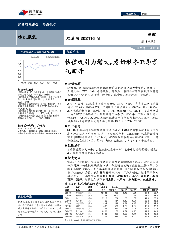 【国信证券】【20211008】纺织服装双周报202116期:估值吸引力增大,看好秋冬旺季景气回升-9页