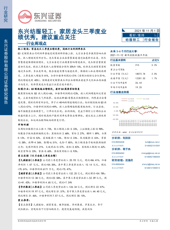 【东兴证券】【20211101】东兴纺服轻工行业周观点:家居龙头三季度业绩优秀,建议重点关注-11页