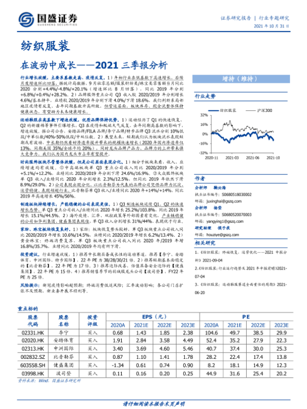 【国盛证券】【20211031】纺织服装2021三季报分析:在波动中成长-21页