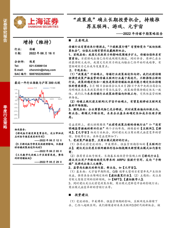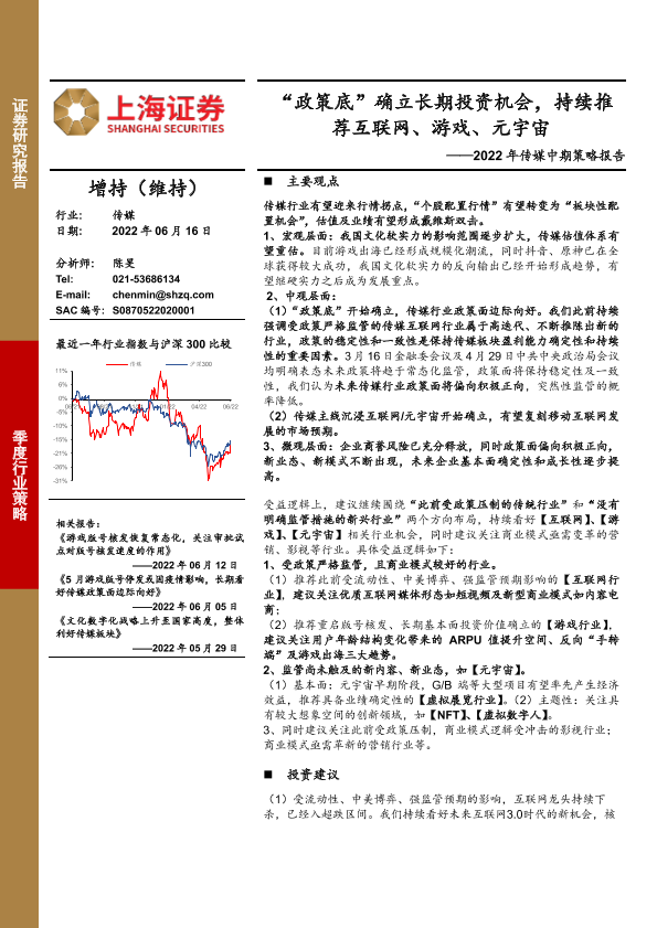 【上海证券】【20220616】2022年传媒行业中期策略报告:“政策底”确立长期投资机会,持续推荐互联网、游戏、元宇宙-64页