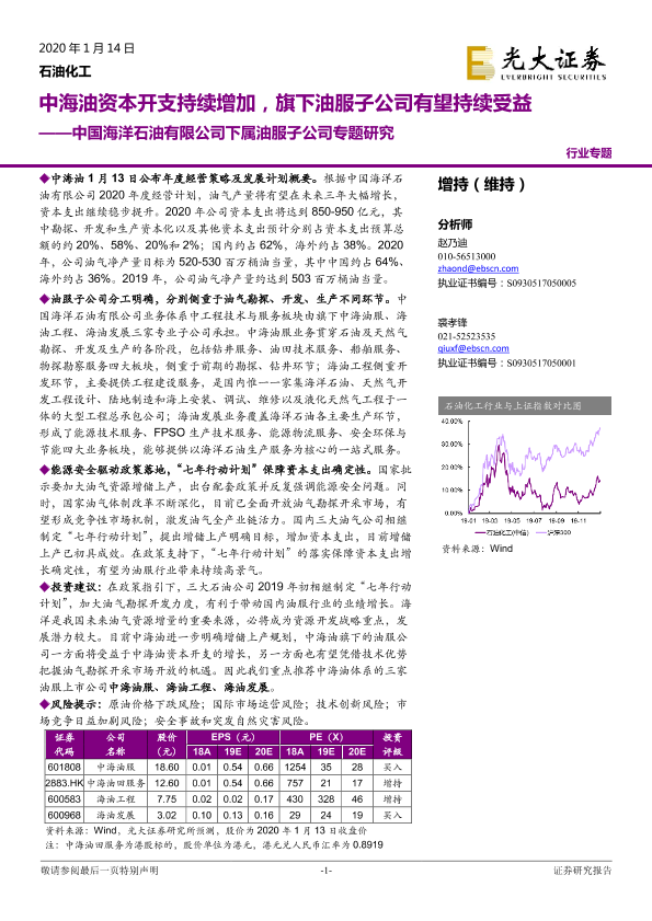 【光大证券】【20200114】中国海洋石油有限公司下属油服子公司专题研究:中海油资本开支持续增加,旗下油服子公司有望持续受益-21页