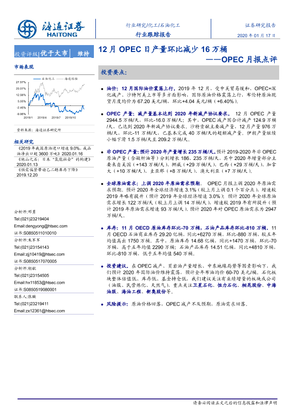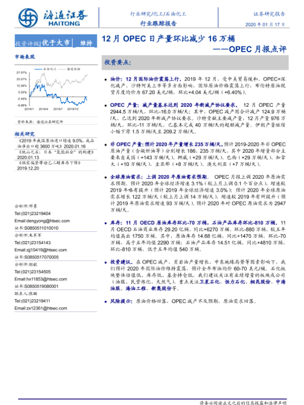 【海通证券】【20200117】20200117-海通证券-石油化工:OPEC月报点评-12月OPEC日产量环比减少16万桶-5页