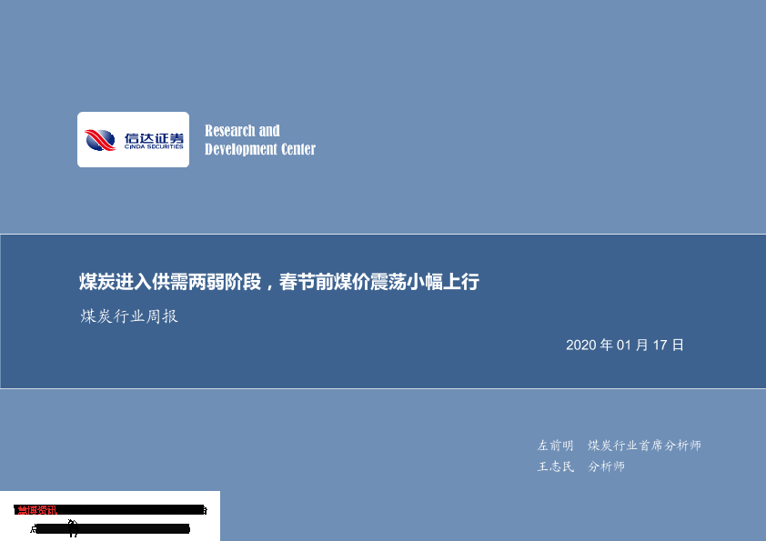 【信达证券】【20200117】20200117-信达证券-煤炭行业周报:煤炭进入供需两弱阶段,春节前煤价震荡小幅上行-24页