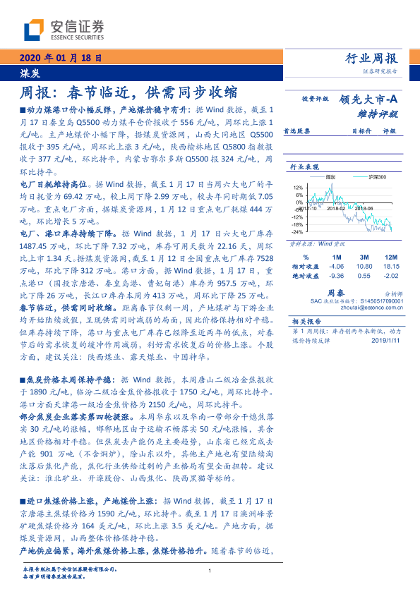 【安信证券】【20200118】20200118-安信证券-煤炭周报:春节临近,供需同步收缩-26页