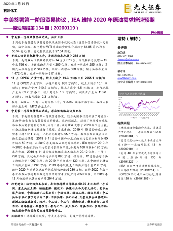 【光大证券】【20200119】原油周报第134期:中美签署第一阶段贸易协议,IEA维持2020年原油需求增速预期-12页