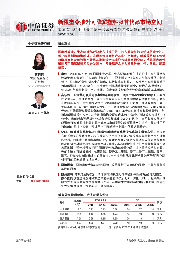 【中信证券】【20200120】新限塑令推升可降解塑料及替代品市场空间-2页