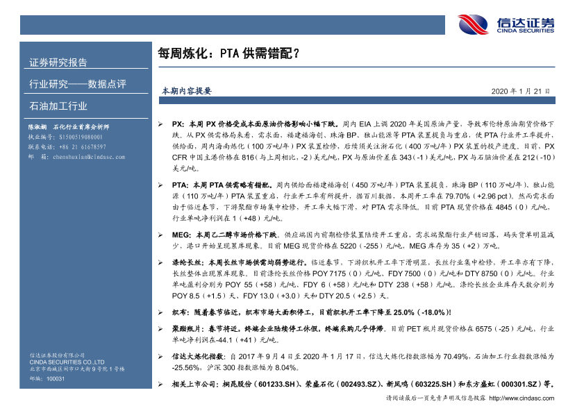 【信达证券】【20200121】20200121-信达证券-石油加工行业每周炼化:PTA供需错配?-9页
