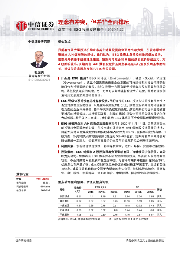 【中信证券】【20200122】煤炭行业ESG投资专题报告:理念有冲突,但并非全面排斥-15页
