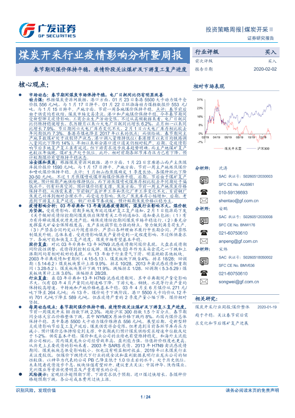 【广发证券】【20200202】20200202-广发证券-煤炭开采行业疫情影响分析暨周报:春节期间煤价保持平稳,疫情阶段关注煤矿及下游复工复产进度-24页