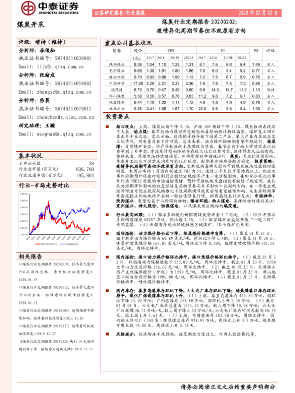 【中泰证券】【20200202】20200202-中泰证券-煤炭行业定期报告:疫情异化周期节奏但不改原有方向-15页