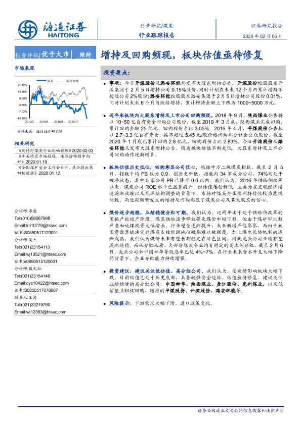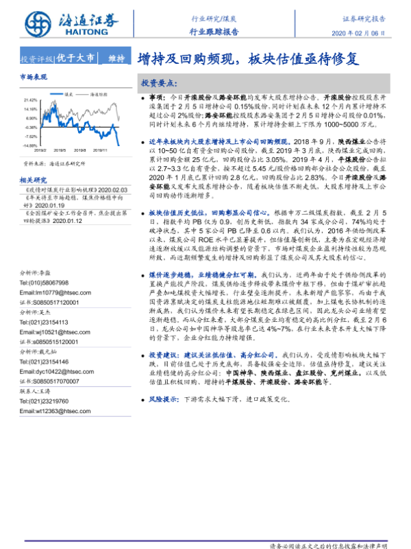 【海通证券】【20200206】20200206-海通证券-煤炭行业跟踪报告:增持及回购频现,板块估值亟待修复-2页