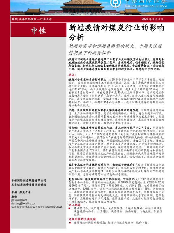 【中银证券】【20200203】新冠疫情对煤炭行业的影响分析-9页
