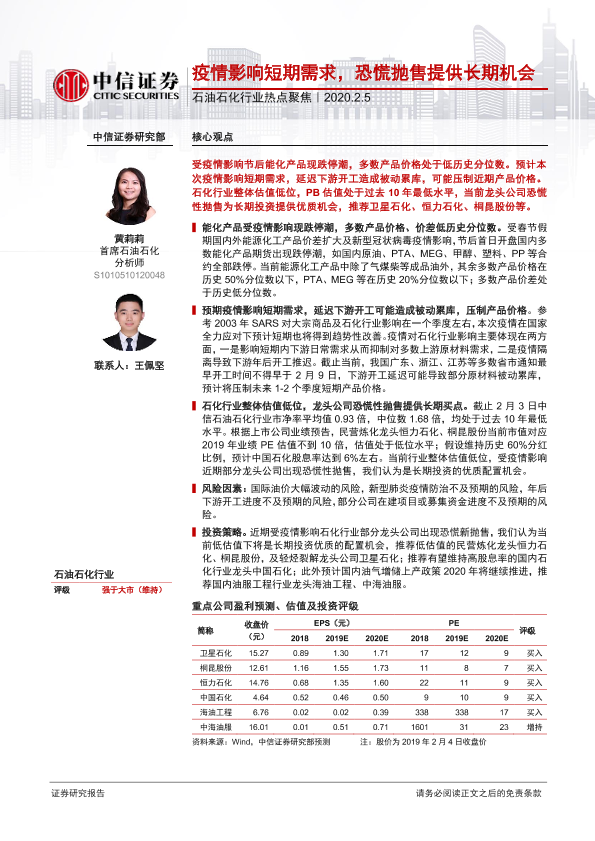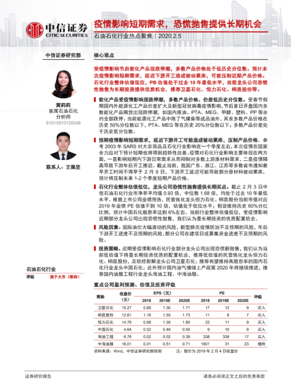 【中信证券】【20200205】石油石化行业热点聚焦:疫情影响短期需求,恐慌抛售提供长期机会-13页