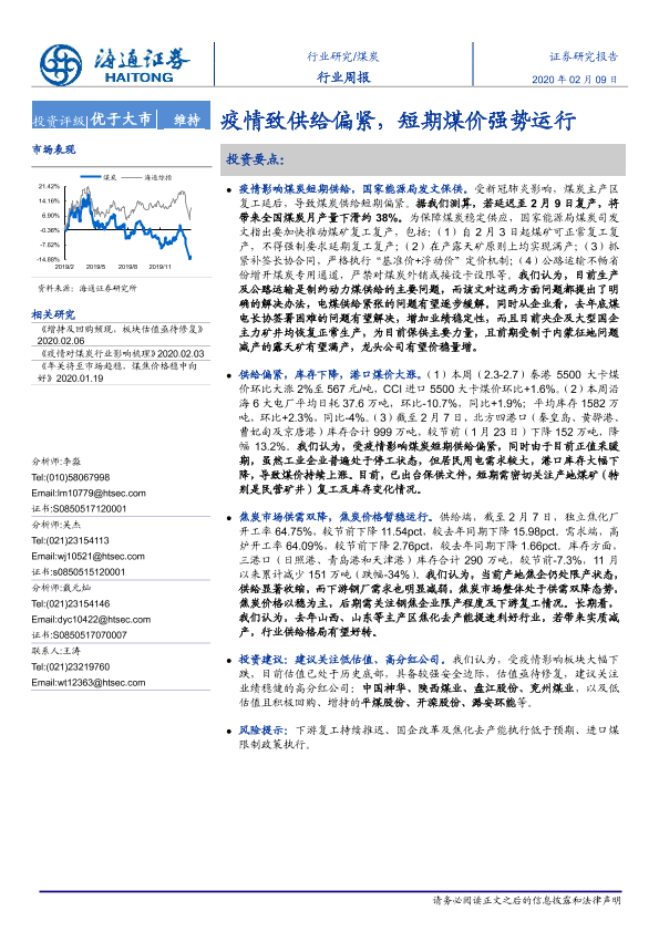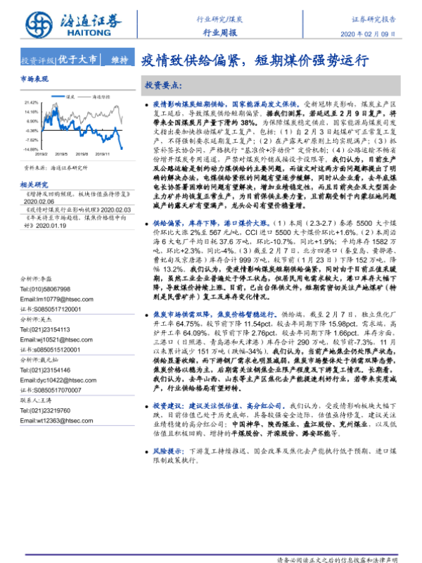 【海通证券】【20200209】20200209-海通证券-煤炭行业周报:疫情致供给偏紧,短期煤价强势运行-2页