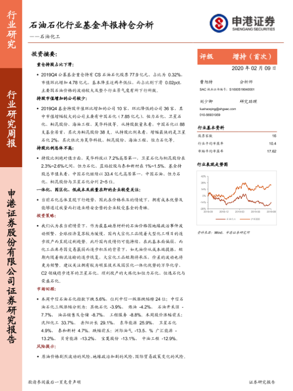 【申港证券】【20200209】20200209-申港证券-石油化工行业研究周报:石油石化行业基金年报持仓分析-23页