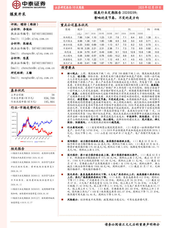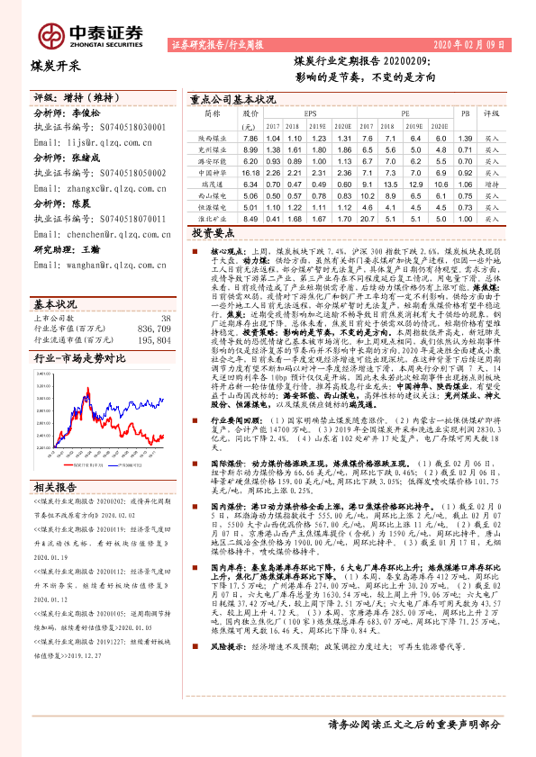 【中泰证券】【20200209】20200209-中泰证券-煤炭行业定期报告:影响的是节奏,不变的是方向-15页