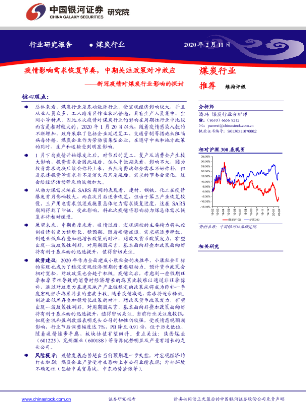 【银河证券】【20200211】新冠疫情对煤炭行业影响的探讨:疫情影响需求恢复节奏,中期关注政策对冲效应-10页