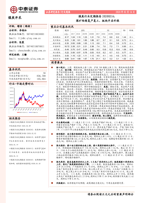 【中泰证券】【20200216】煤炭行业定期报告:煤矿陆续复产复工,板块开启补涨-15页
