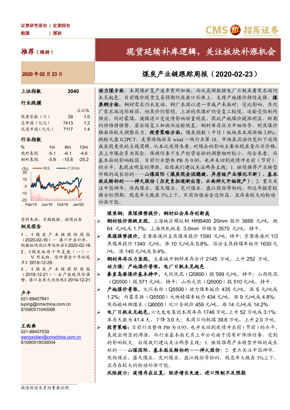 【海通证券】【20200223】煤炭产业链跟踪周报:现货延续补库逻辑,关注板块补涨机会-21页