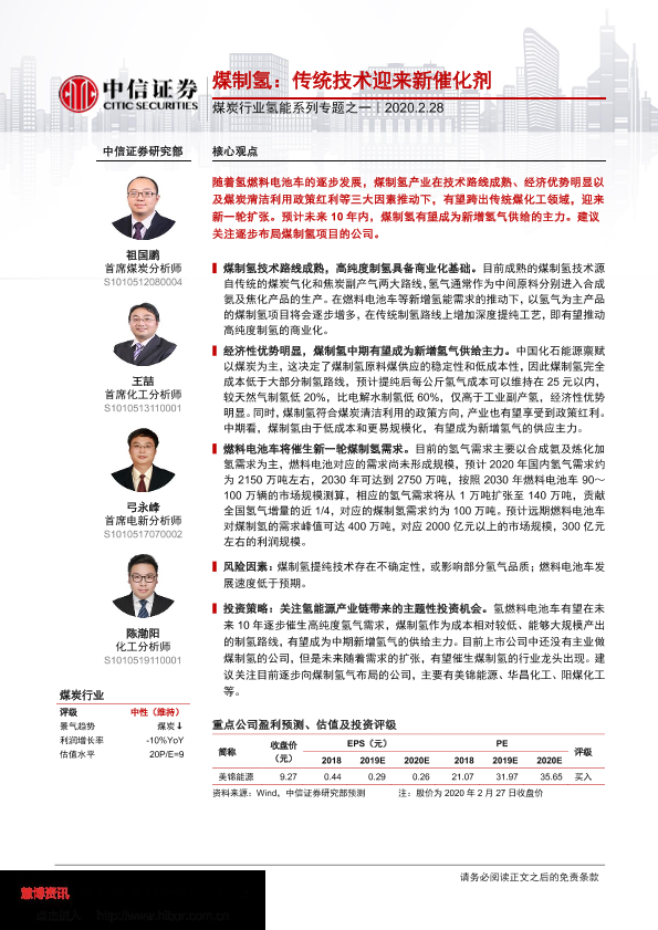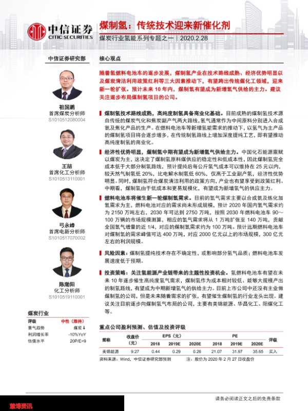 【中信证券】【20200228】煤制氢:传统技术迎来新催化剂-15页