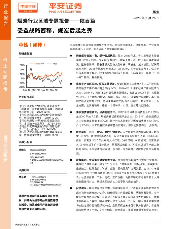 【平安证券】【20200228】煤炭行业区域专题报告——陕西篇:受益战略西移,煤炭后起之秀-29页