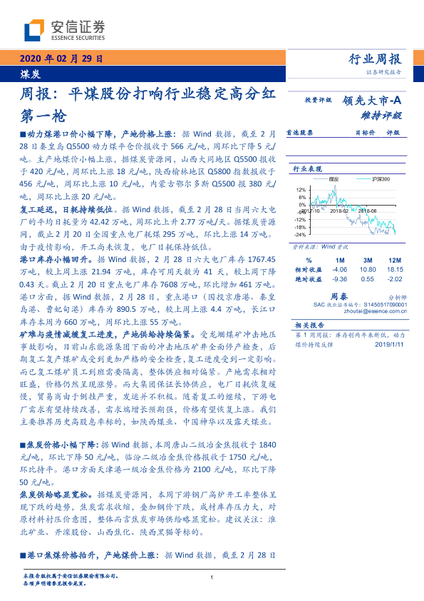 【安信证券】【20200229】20200229-安信证券-煤炭周报:平煤股份打响行业稳定高分红第一枪-26页