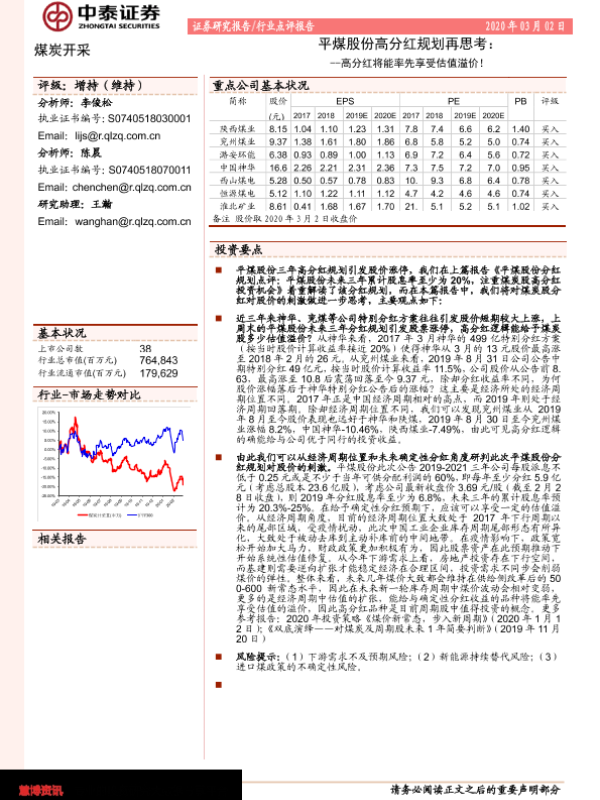 【中泰证券】【20200302】平煤股份高分红规划再思考:高分红将能率先享受估值溢价!-3页