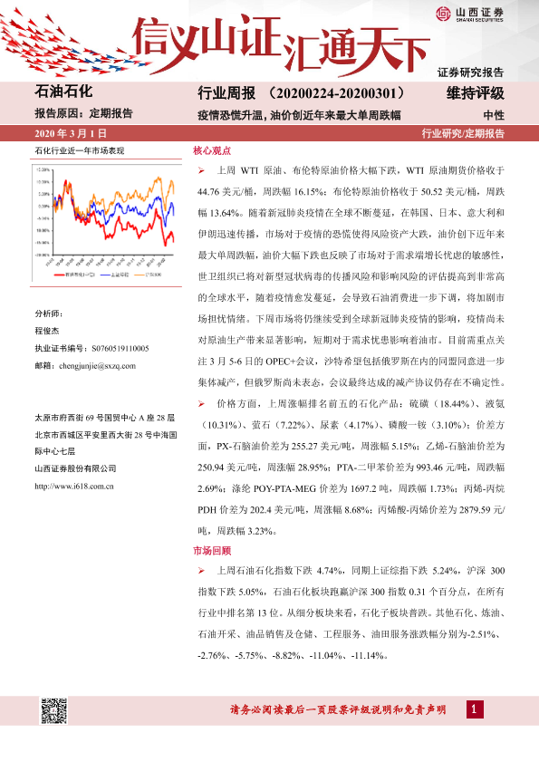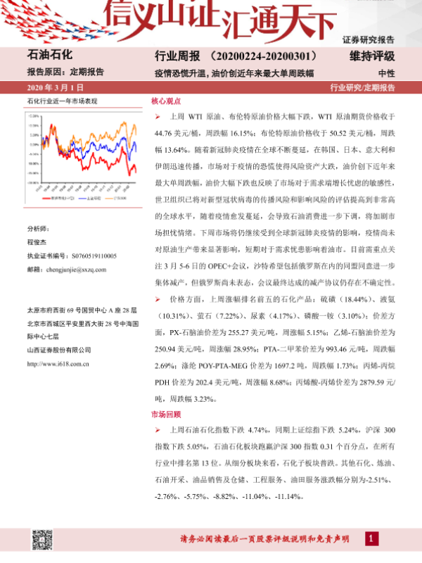 【山西证券】【20200301】石油石化行业周报:疫情恐慌升温,油价创近年来最大单周跌幅-14页