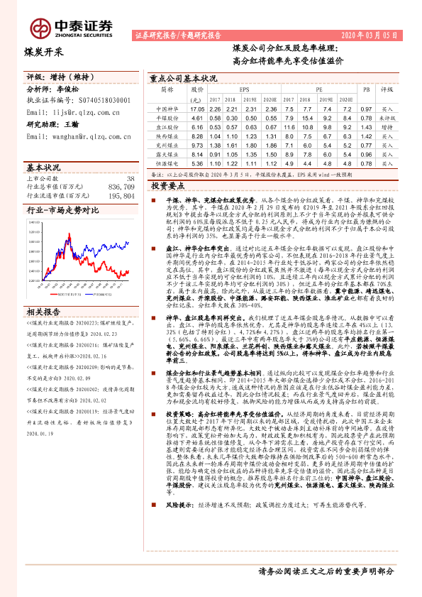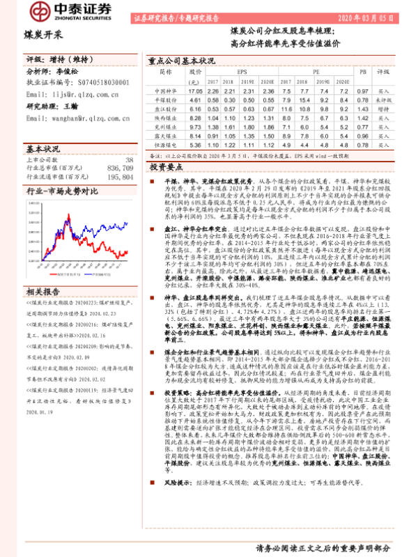 【中泰证券】【20200305】煤炭公司分红及股息率梳理:高分红将能率先享受估值溢价-11页