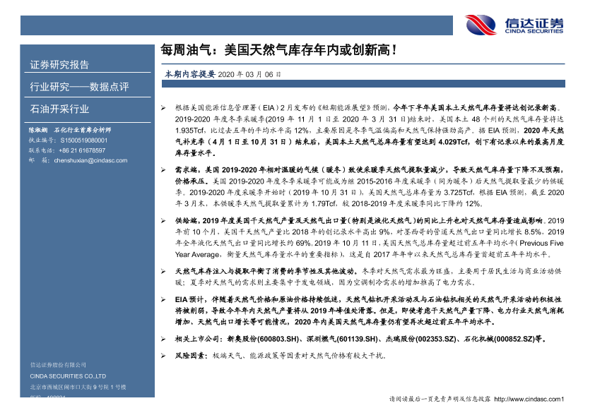 【信达证券】【20200306】每周油气:美国天然气库存年内或创新高!-6页