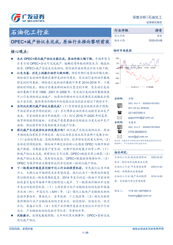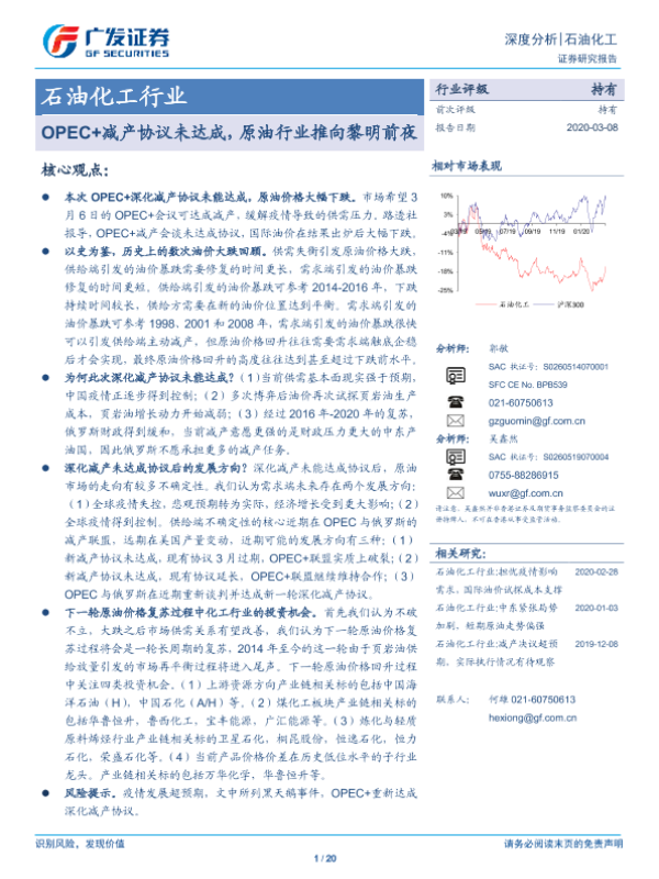 【广发证券】【20200308】OPEC+减产协议未达成,原油行业推向黎明前夜-20页