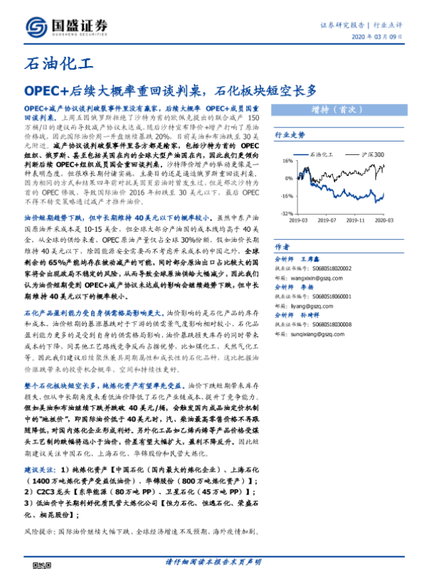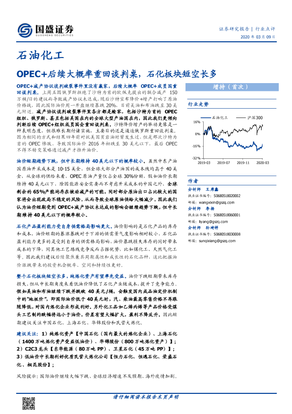 【国盛证券】【20200309】石油化工:OPEC+后续大概率重回谈判桌,石化板块短空长多-2页