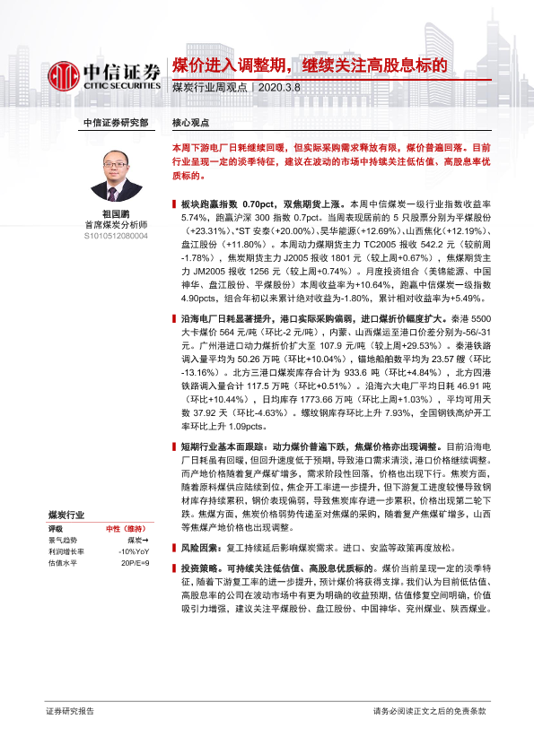 【中信证券】【20200308】20200308-中信证券-煤炭行业周观点:煤价进入调整期,继续关注高股息标的-7页