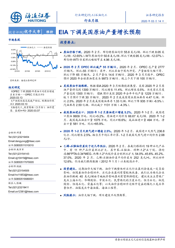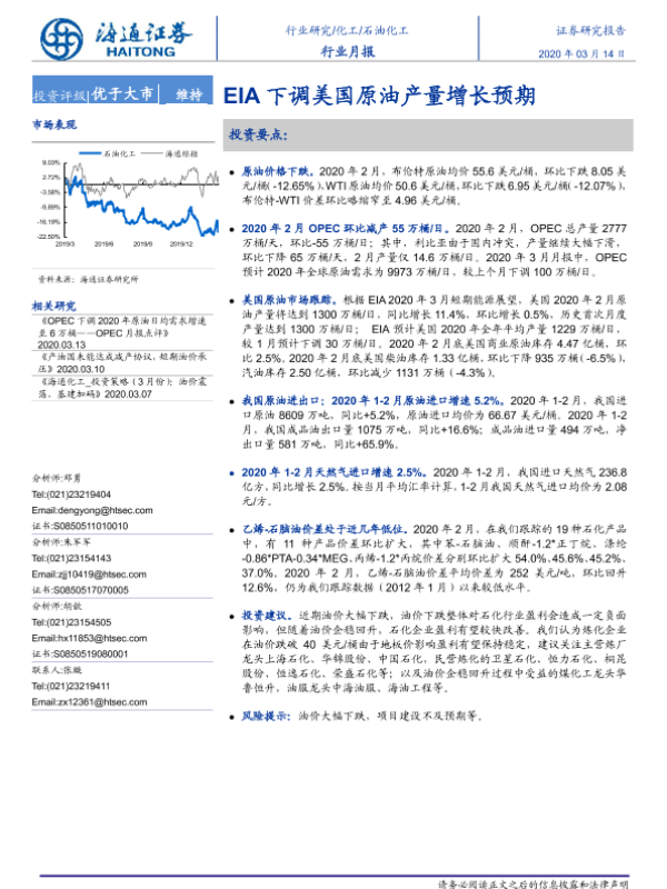 【海通证券】【20200314】20200314-海通证券-石油化工行业月报:EIA下调美国原油产量增长预期-8页