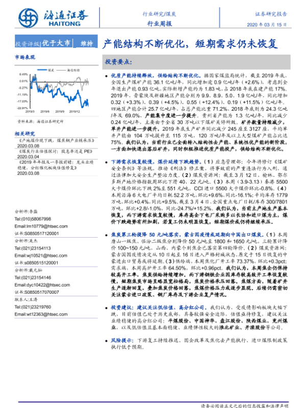 【海通证券】【20200315】20200315-海通证券-煤炭行业周报:产能结构不断优化,短期需求仍未恢复-2页