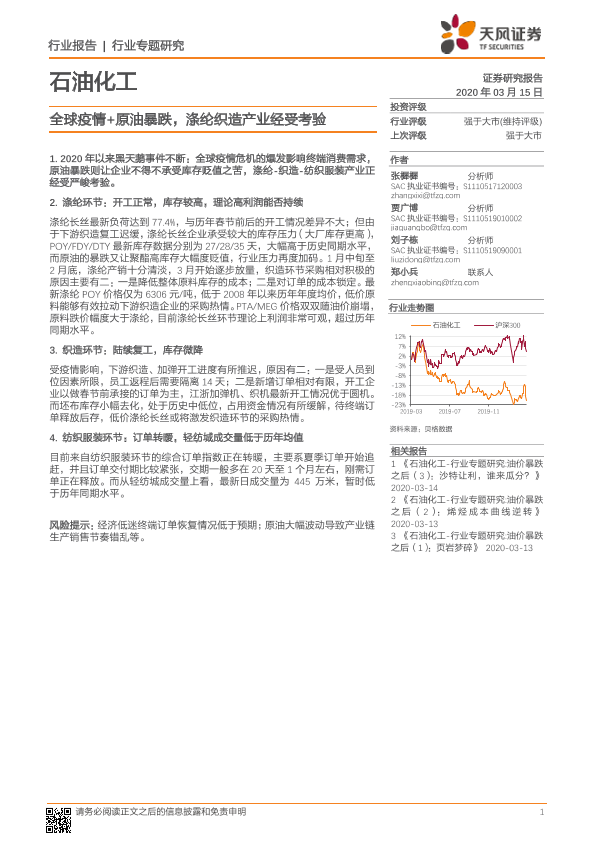【天风证券】【20200315】全球疫情+原油暴跌,涤纶织造产业经受考验-7页